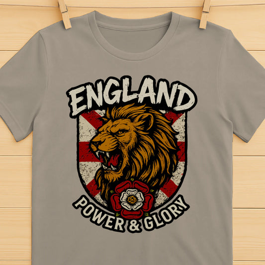 England Power & Glory T-Shirt | Roaring Lion Shield Heritage Tee for Men
