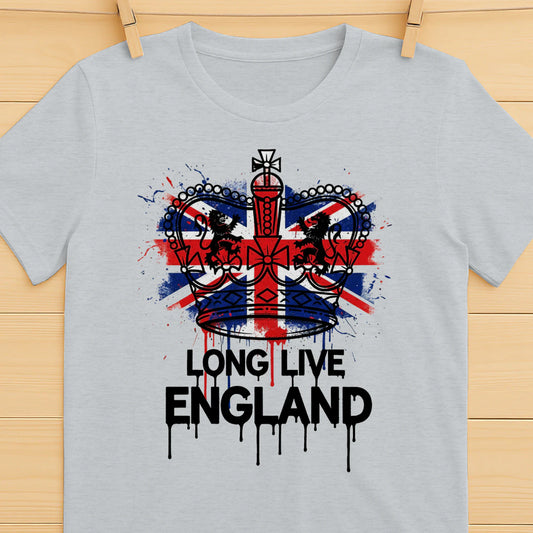 Long Live England T-Shirt | Splatter Union Jack Crown Tee for Men