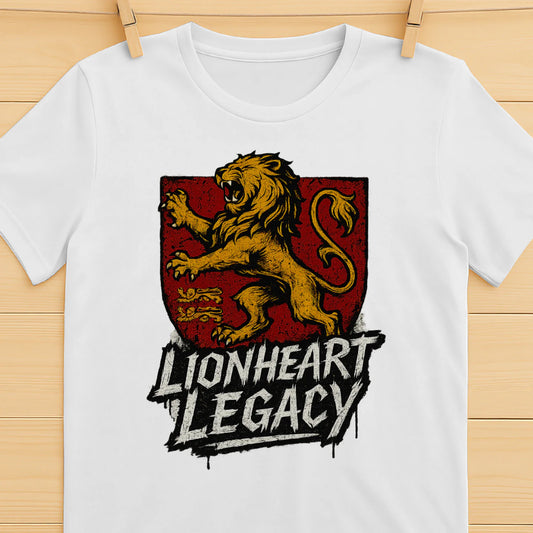 Lionheart Legacy England T-Shirt | Heraldic Lion Shield Heritage Tee for Men