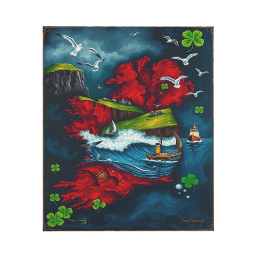 Map of Ireland 320 GSM Thick Flannel Throw Blanket 60"x50"