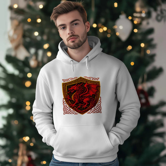 Welsh Dragon Shield Unisex Hoodie | Soft Ring-Spun Cotton | Red Dragon Heritage