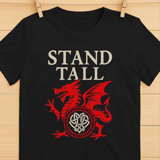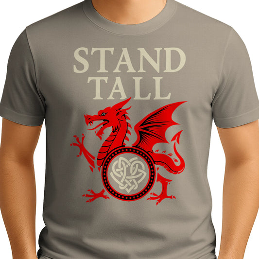 Stand Tall Welsh Dragon Men's Classic T-Shirt | Heritage Badge Pride Design, Premium Ring-Spun Cotton Tee in Multiple Colours