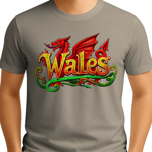 Wales Dragon Logo Men's Classic T-Shirt | National Pride Flourish Design, Premium Ring-Spun Cotton Tee in Multiple Colours